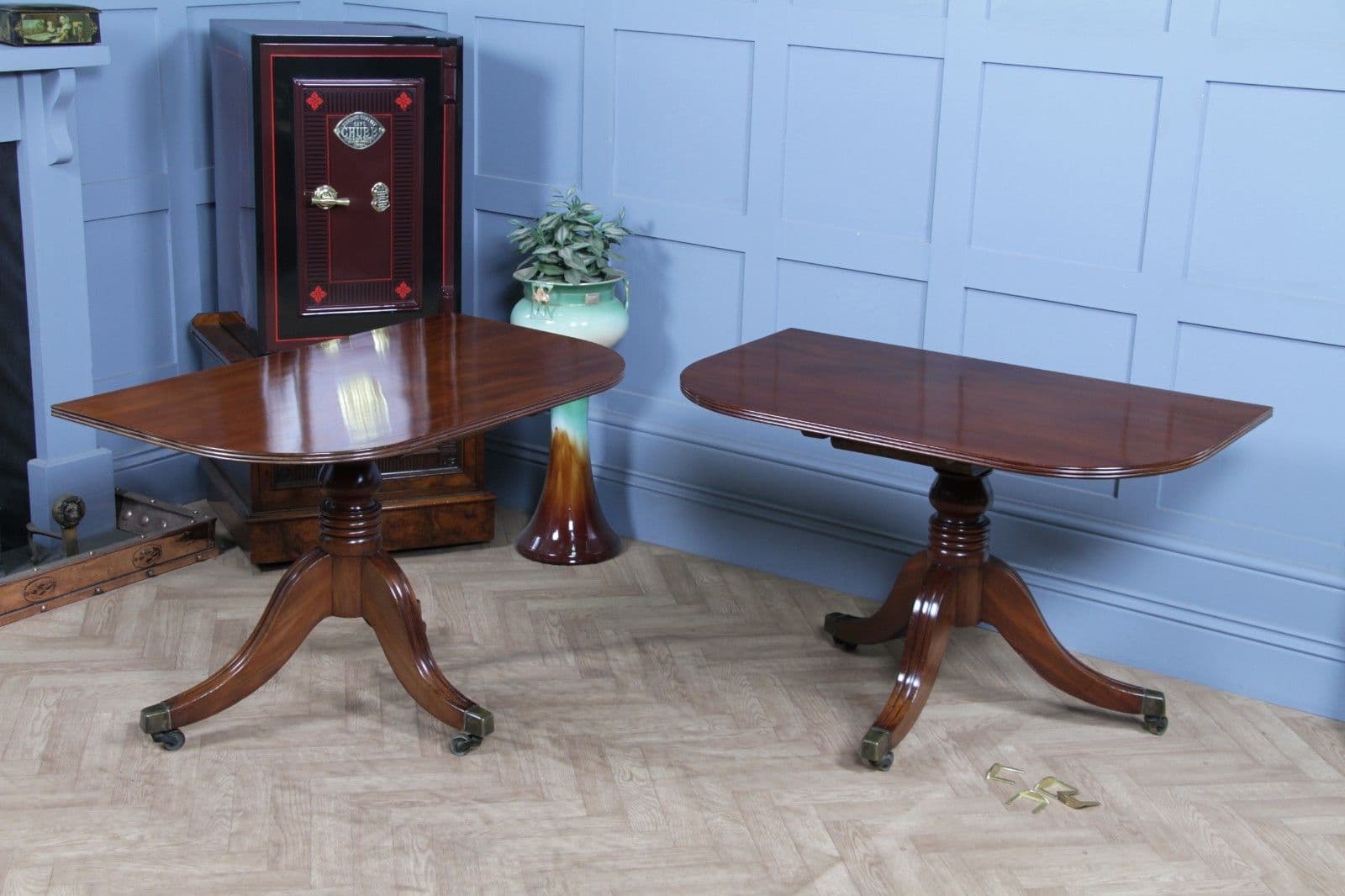 Antique Georgian Regency Mahogany D End Pedestal Dining Table Pair, Side Tables