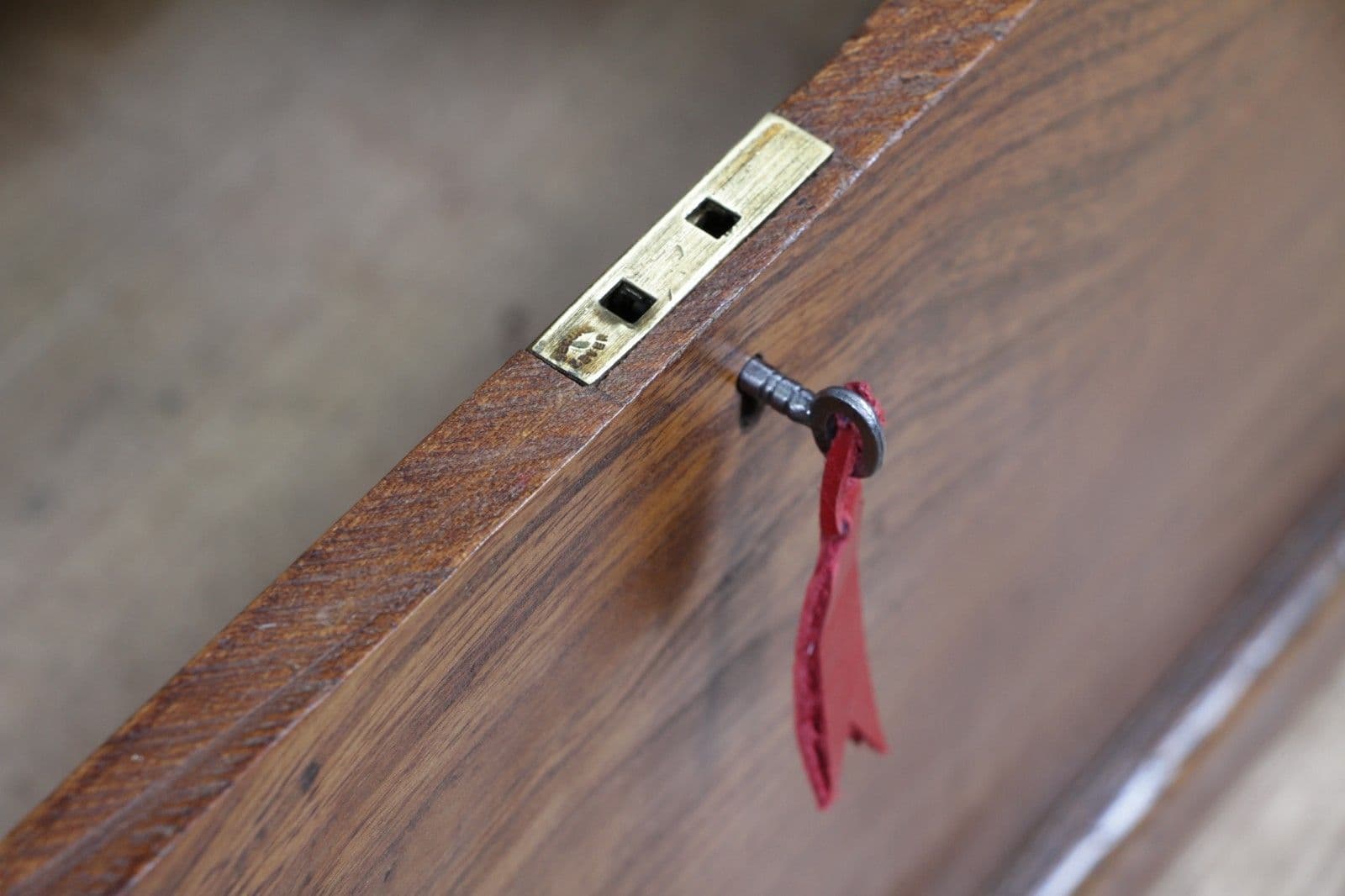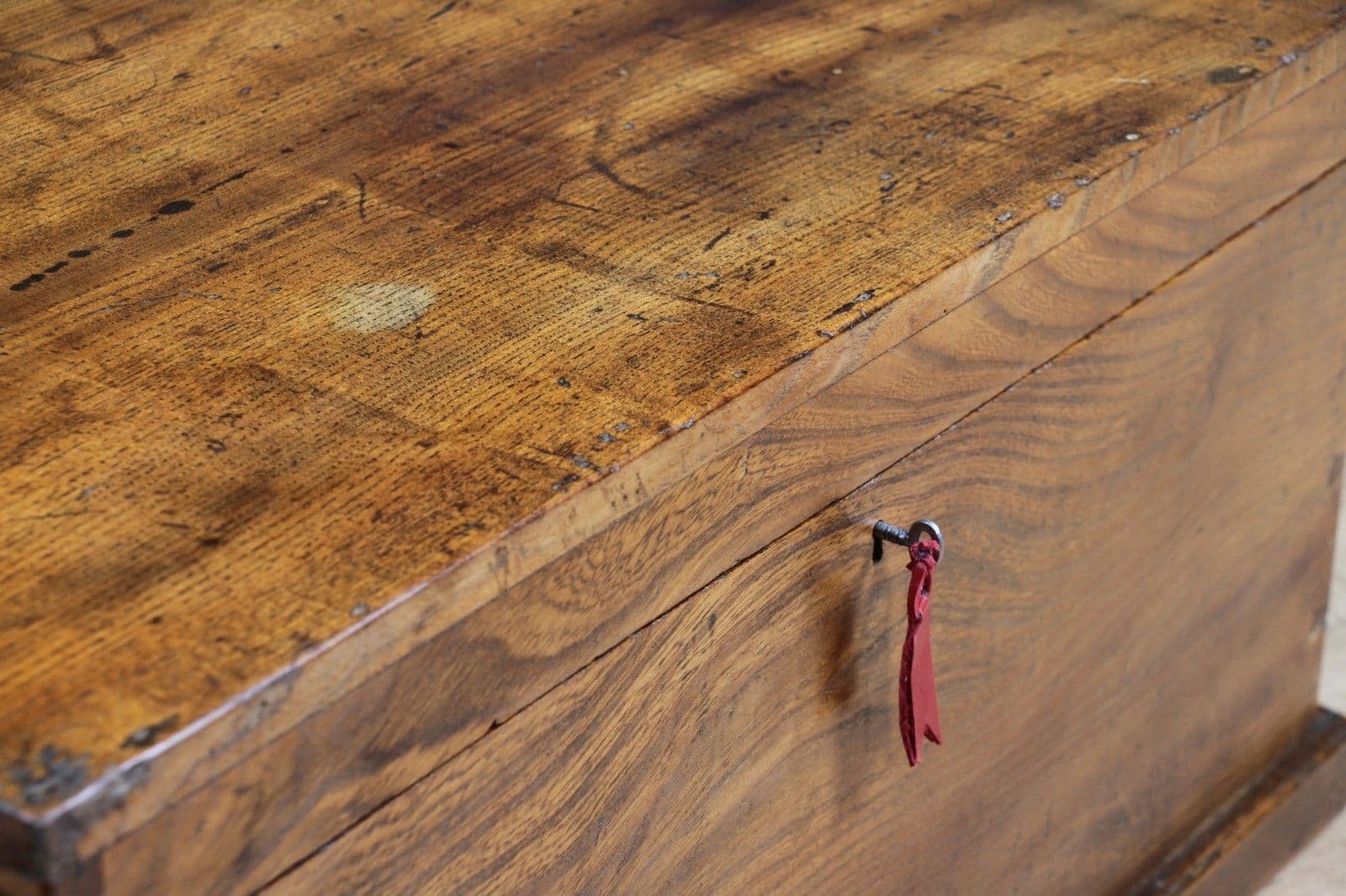 Original Working Lock & Key. Rare Solid Elm Construction. Incredible Patina.
