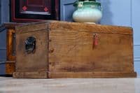 Antique Solid Elm Joiner Cabinet Maker’s Toolbox Chest Coffee Table Locking 1900