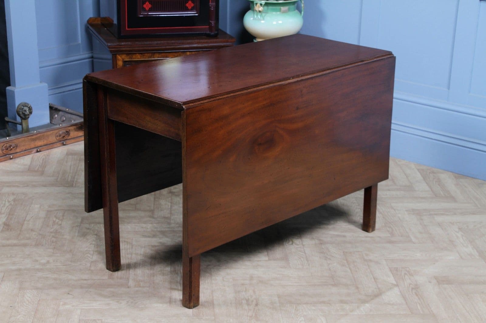 This is a marvellous example of a Georgian drop leaf solid Mahogany side table believed to be made around C1820 featuring a lovely lightly faded yet rich Mahogany colour with lots of original patina. We have just cleaned and waxed this table to give a lovely natural sheen and enhancement.