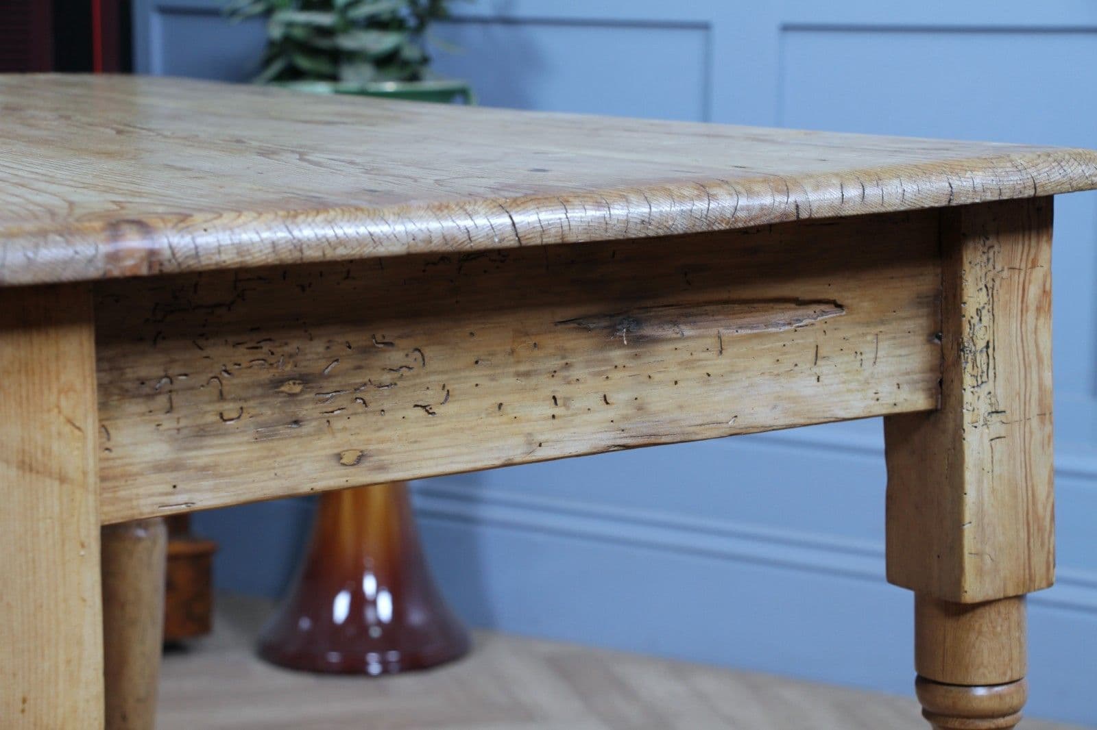 While the table displays historic woodworm marks on the legs, side rails, and top, these have aged beautifully over the decades, adding a charming, textured patina that serves as a testament to its long history. For complete peace of mind, we have treated the piece again in our workshop to ensure it remains inactive. Structurally, the table has been fully restored; all joints have been tightened and secured, ensuring it is rock-solid with no wobbles or loose legs. We have finished the piece with a high-quality wax to protect the delicate, faded finish while highlighting the unique story of the timber. This is a solid, honest, and structurally perfect table for those who appreciate true antique soul and is in home ready condition.